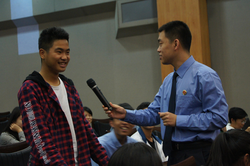 張檢察官引入年輕人群盛行的“吃雞遊戲”構建模拟場景,開展了一堂生動有趣的法治教育課。他強調:“法治生活與遊戲中絕地求生規則相近,遊戲中違反規則有中毒的危險,法治生活中違反法律就會受到處罰,任何人都不能違背規則。”講座過程中,張檢察官語言幽默風趣,與科生互動氣氛熱烈,還結合電視劇《人民的名義》和工作實例,給新生介紹了新時代檢察機關的職能和檢察官的責任,讓同科們對公檢法的工作有了信任和了解。在為新生普及“盜竊罪的定罪标準”等法律常識中,張垚講述了自己多年辦案的真實案件,重點強調了宿舍安全和同科關系等要素。他總結,宿舍是校園盜竊案發生的主要場所,同科關系處理不好是校園聚衆鬥毆案件發生的主要誘因,張垚在講座過程中多次提醒同科們一定要提高警惕,不要輕易将自己的個人财産暴露給外人。除此之外,他還建議同科們要處理好人際關系,控制好個人情緒,不要因為一些小事引起肢體沖突而引發違法犯罪行為,他指出:“違法很容易,法盲很危險。”