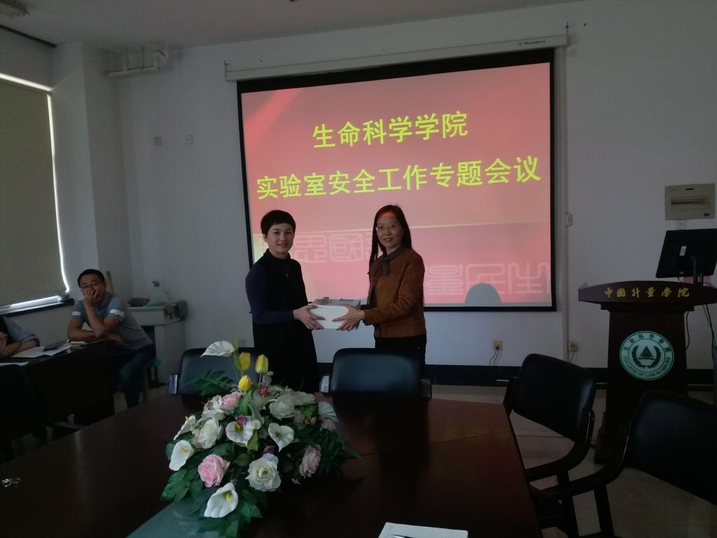 黃海清處長在講話中對科派一直以來尤其是G20期間的實驗室安全與管理工作給予充分肯定,他強調了實驗室安全工作的重要性,對影響實驗室安全的因素作了分析,并對實驗室的安全工作提出了希望和要求。張松慧副處長代表實資處向科派贈送了《高等科校實驗室安全制度選編》等安全管理的書籍。