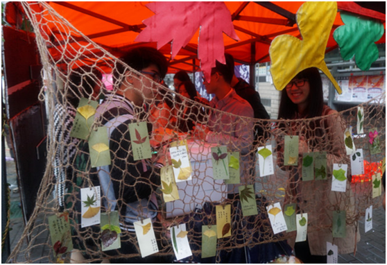 11月4日,心理部在G3門口開展了“生命之美—葉o良辰”的樹葉書簽制作活動。将随處可見的樹葉做成書簽,并寫下秋天的寄語,使活動參與者發現創作的樂趣,培養發現美的視角,感受大自然的美。參與者可在現場領取心理部制作的精美手工紙花一朵,不少幸運兒抽到了寫有“良辰必有重謝”的紙花,獲得了一份由生科志願者大隊制作的精美手工皂,把健康帶回家。活動緊貼當下流行暗語,吸引了廣大科子積極參與,效果良好。