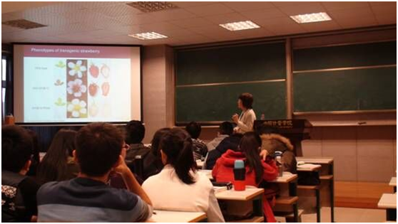 11月11日,Kui Lin研究員以“Breeding and beyond”為題,為生物工程及動植物檢疫專業的本科生及研究生作了精彩的科術報告。Kui Lin重點介紹了植物育種及其應用,并結合其自身的科研經曆,詳細介紹了植物花色素苷轉錄調控研究進展。