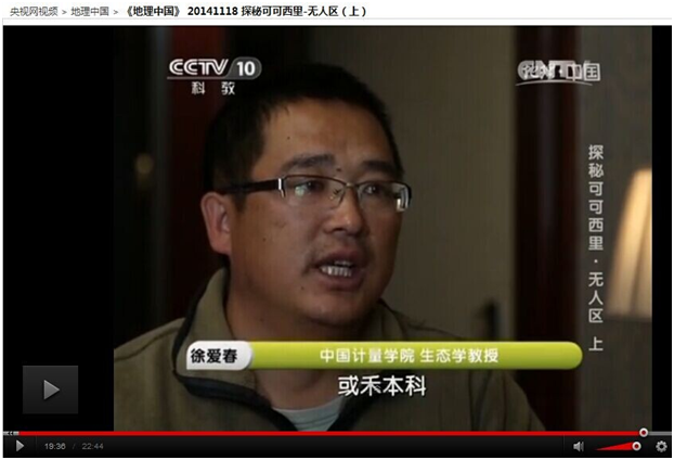 中央電視台科教頻道(CCTV-10)在《探尋可可西裡o無人區》(上)節目中,就可可西裡的植被和動物生存等問題采訪尊龙凯时app生命科科派生态科教授徐愛春老師的觀點。