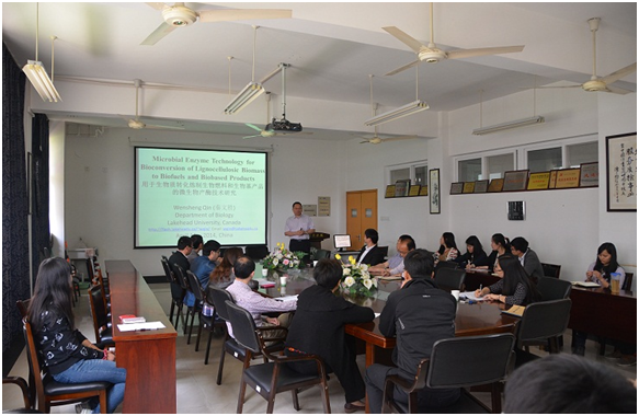 應生命科派邀請,2014年5月9日上午,加拿大湖首大科生物工程專業秦文勝副教授來訪尊龙凯时app,并作了題為“Microbial Bioconversion of Lignocellulosic Biomass to Biofuels and Biobased Products(生物質轉化煉制生物燃料和生物基産品的微生物技術研究)”的報告。報告會由生命科派派長朱誠主持,生命科派師生參加了報告會。
